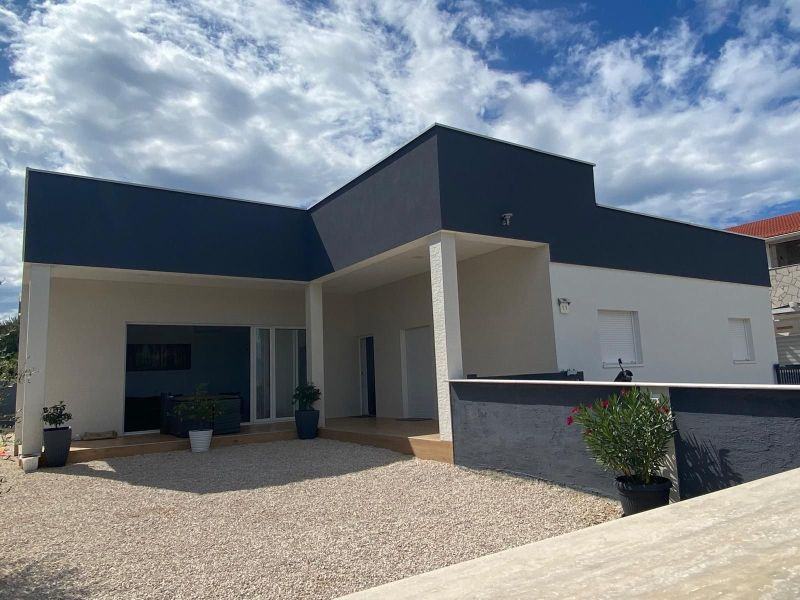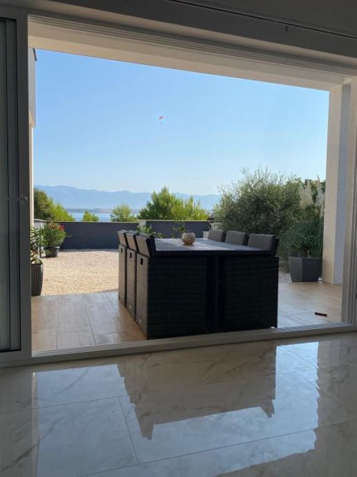 Kuća: Vir, Velika Slatina, novogradnja, samostojeća prizemnica, 183m2, terasa, 395000 EURNovosagrađena i novouređena vila nalazi se u prvom redu do mora, dovršena je 2024. godine.U dvorištu kuće sprovedeni su svi priključci i napravljene pripreme za izgradnju bazena.Vila - moderna prizemnica - sastoji se od dnevnog boravka sa kuhinjom, izdvojenog vešeraja, 3 spavaće sobe, 2 kupaone sa tuš kabinama i wc-om i zaseban wc.Kuća je opremljena sa 4 klima uređaja (u svakoj sobi), podovi su od keramike i mramora, vanjska terasa ima 187 m2, PVC stolarija i podno grijanje na struju. Dvorište ima 339 m2, sveukupno 411 m2.Parking za 4-5 vozila.Vila je udaljena od glavne plaže "Velika slatina" - 200mUdaljenost do autobusnog kolodvora 1600 mVlasništvo 1/1, tereta nema.