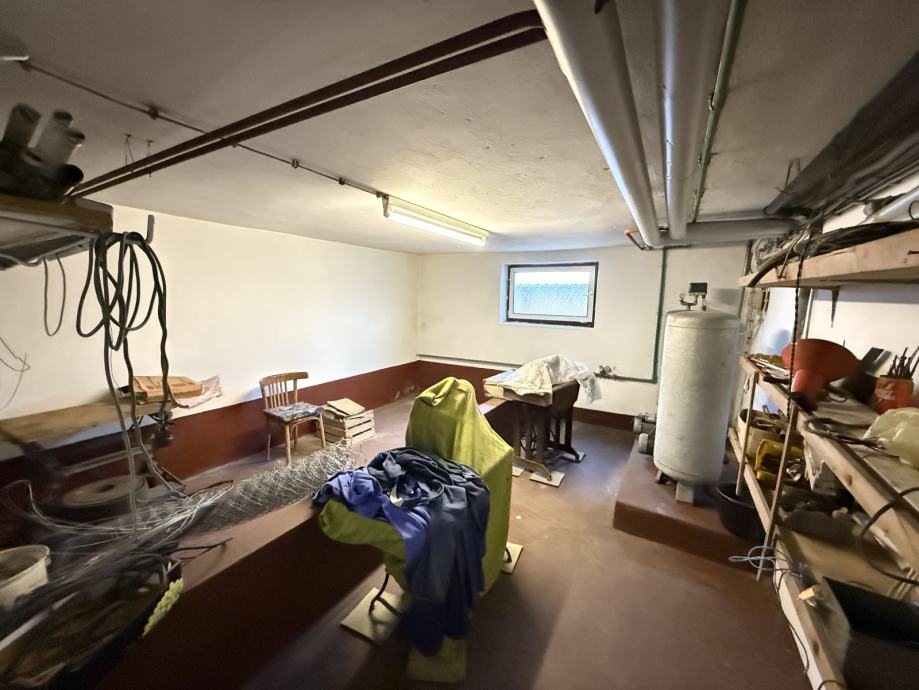 Podrum uključuje garažu, spremište, ljetnu kuhinju, radionicu, kotlovnicu i dodatne dvije prostorije koje služe kao skladišni prostor. Povezan je unutarnjim stubištem s prizemljem, a ima i zaseban ulaz izvana.