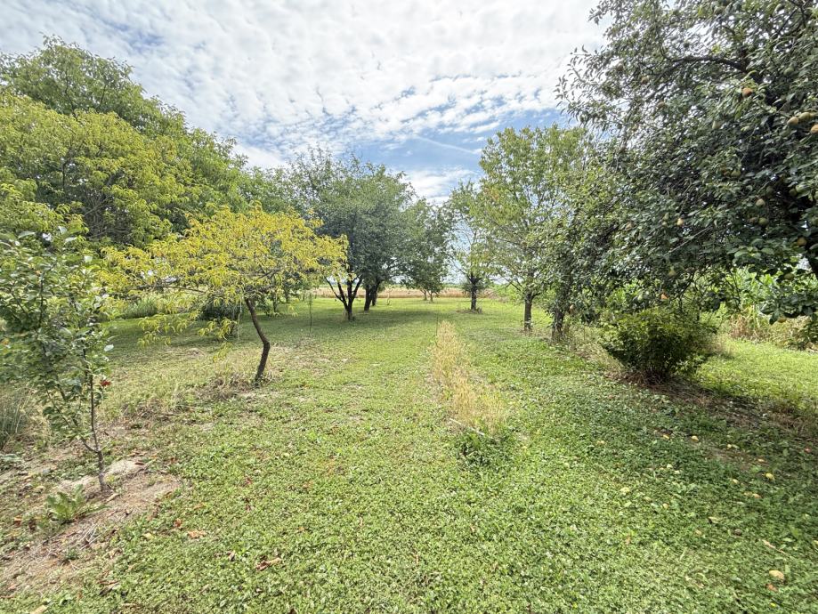 Na glavnoj parceli nalaze se dvije garaže, dodatno spremište, prostrano dvorište i voćnjak s raznim vrstama voćaka. Dodatna parcela pruža mogućnosti za proširenje, dodatnu gradnju ili druge namjene.