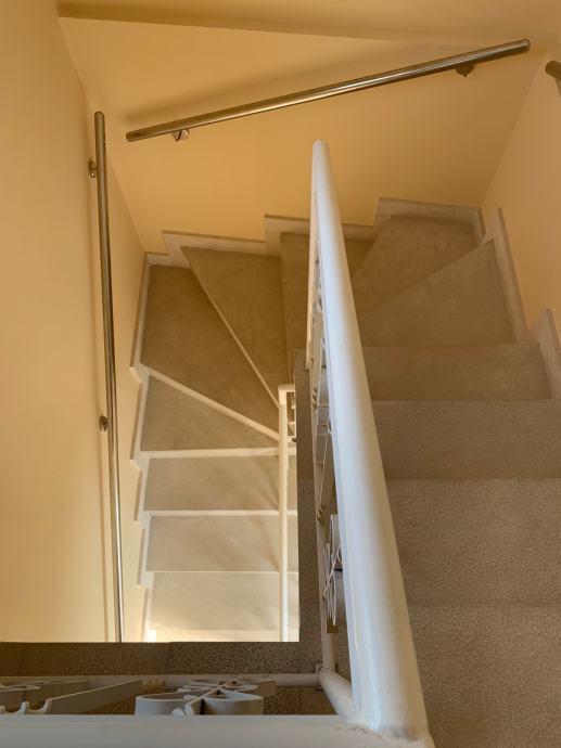 Unutarnje stepenice vode na prvi kat gdje se nalaze dvije spavaće sobe, dva balkona i velika kupaonica s kadom i toaletom.