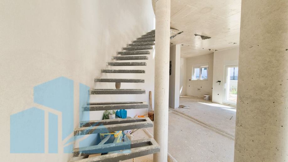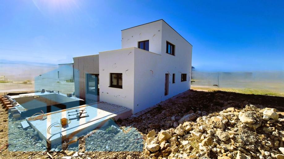 U ponudi je prekrasna samostojeća obiteljska kuća modernog dizajna s bazenom, smještena u mirnom dijelu Vodica. Nekretnina je trenutno u izgradnji, a završetak radova i useljenje planirano je za ljeto/jesen 2025.