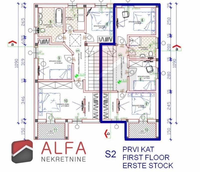 Moguće je manje odstupanje u kvadraturi nekretnine. Stvarna i konačna kvadratura će se utvrditi etažnim elaboratom i upisom u zemljišne knjige.