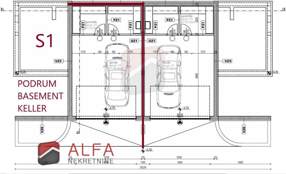 - U podrumu se nalazi prostrana garaža od 35 m2 + odvojeno spremište i strojarnica za bazen.