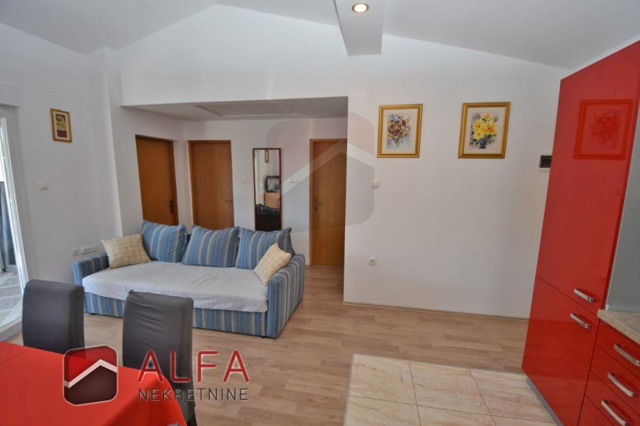 U suterenu kuće se nalaze dva apartmana koja se sastoje od jedne spavaće sobe, kupaonice, kuhinje s blagovaonicom, te natkrivene terase. Svaki ima svoj odvojeni ulaz.