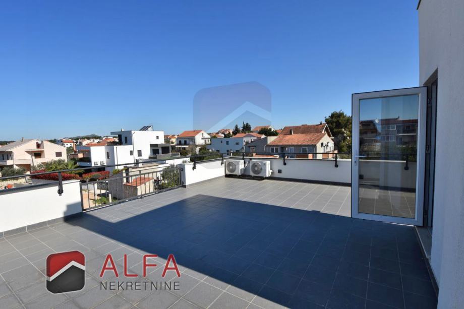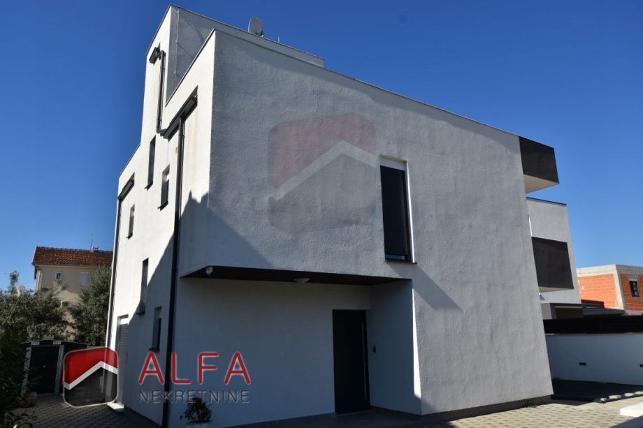 Vodice, prodaje se samostojeća moderna obiteljska kuća katnica s bazenom i okućnicom, te krovnom terasom sa pogledom na more. Nalazi se na mirnoj lokaciji i udaljena je 500 metara od mora.
