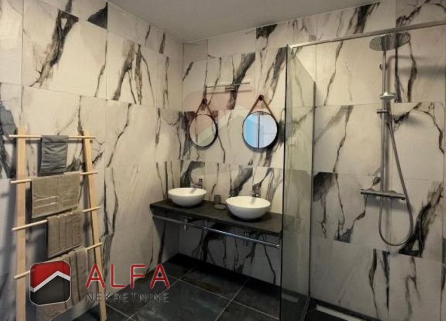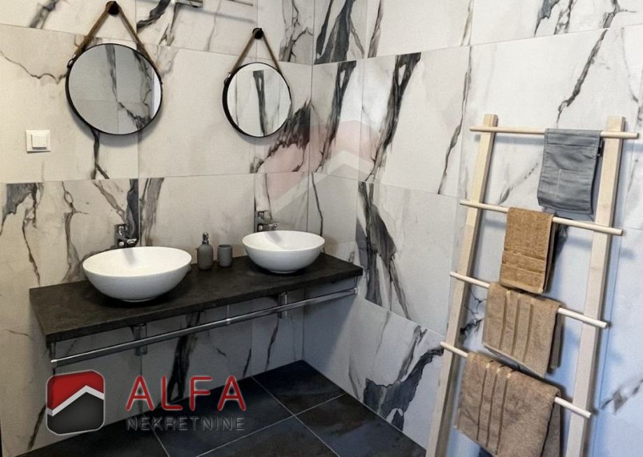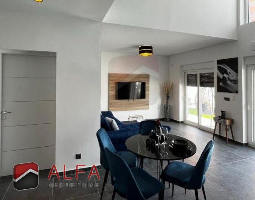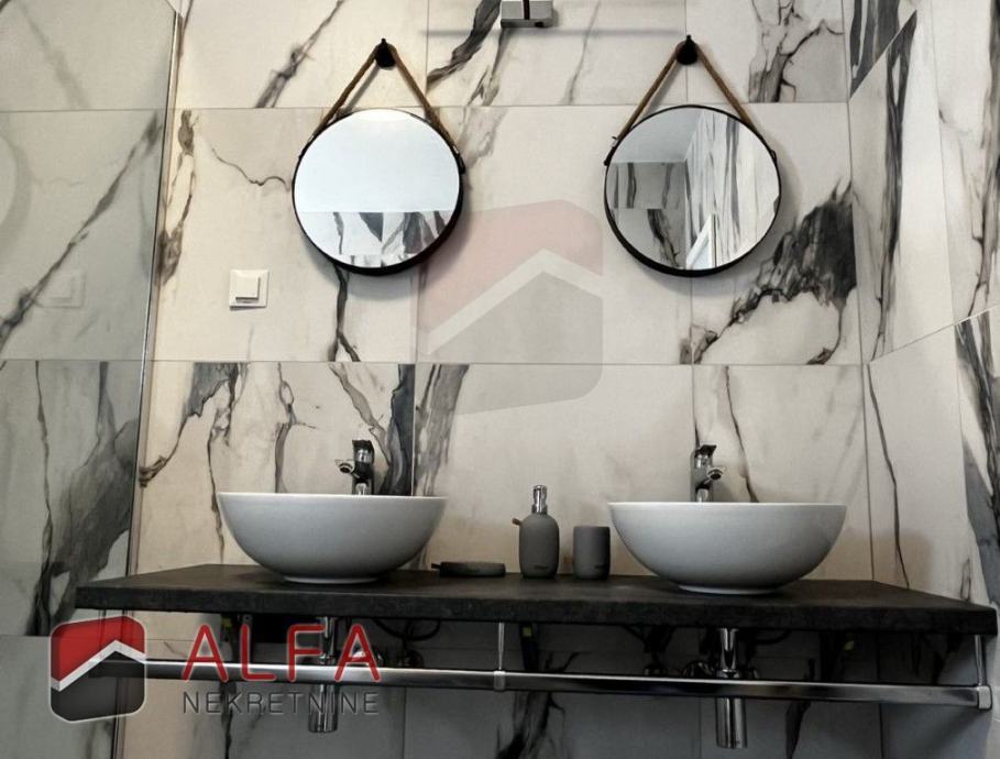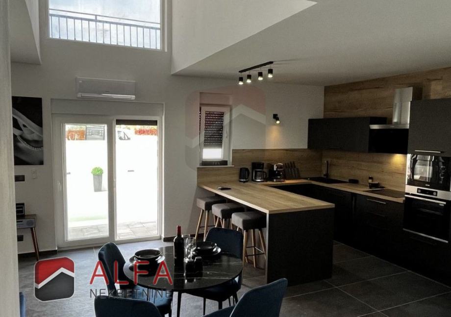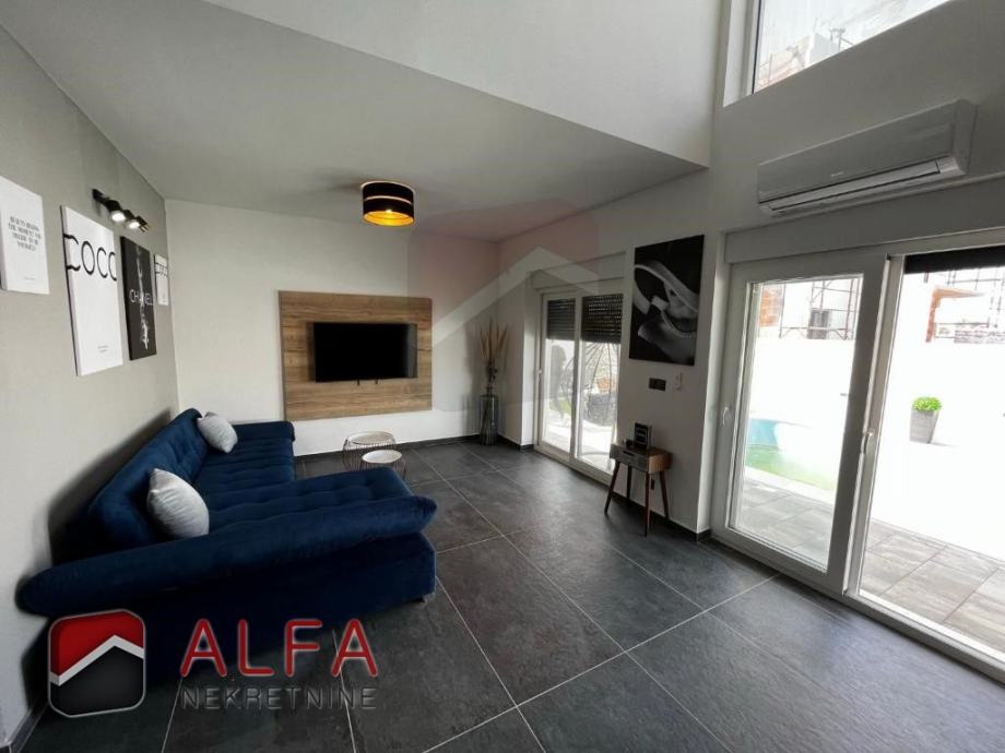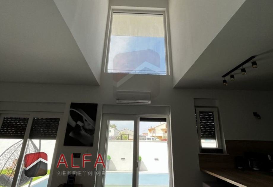 Kuća je opremljena klimatizacijskim uređajima i električnim roletama, svim kućanskim aparatima i potpuno je namještena luksuznim namještajem te spremna za useljenje.