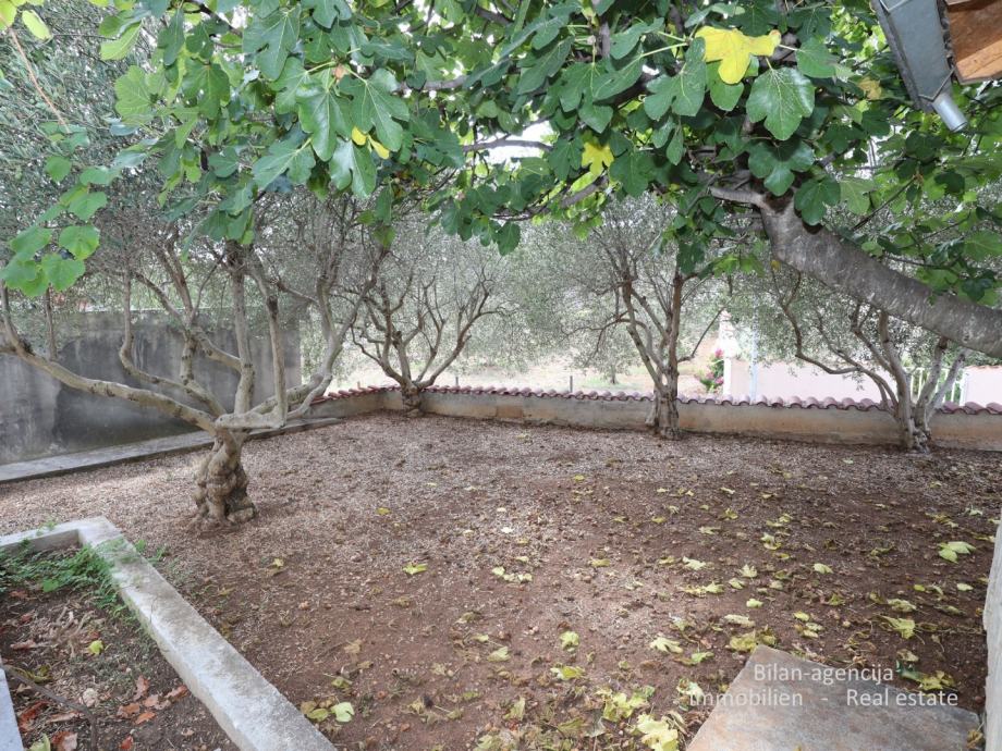 Na prostranoj okućnici se nalazi maslinik, terasa sa vrtnom kućicom (wc, kuhinja), gril, parkirna mjesta i dvojna garaža, koji nisu