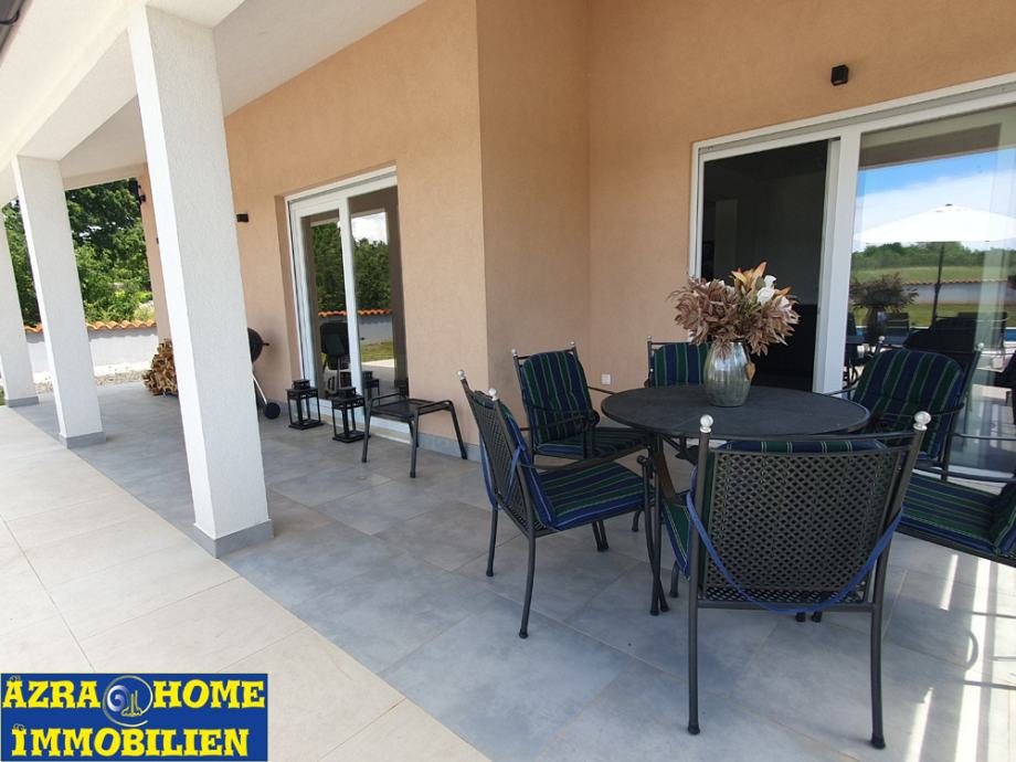 U okolici Vodnjana , na udaljenosti od 5km, na kraju sela , uz prekrasnu prirodu, nalazi se ova samostojeća novija kuća bruto površine 180 m2 ( 131 m2 + 49 m2 terase ) .