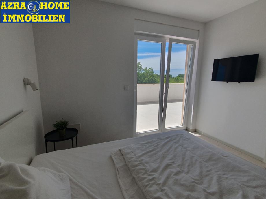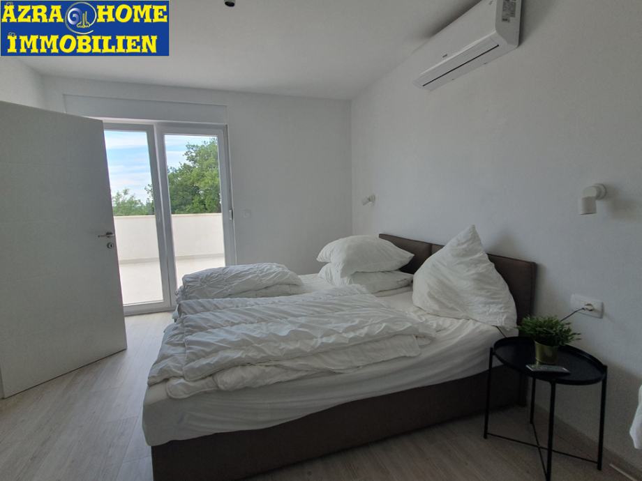 Na prvom katu je predsoblje iz kojeg se ulazi u dvije spavaće sobe sa vlastitim kupaonicama, koje dijele zajedničku terasu s koje se pruža prekrasan pogled na okruženje.