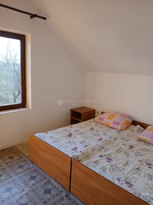 U prizemlju :spavaća soba dnevna soba,kuhinja, kupaona i WC. Na katu se nalaze 3 sobe, kupaona i Wc nisu završeni