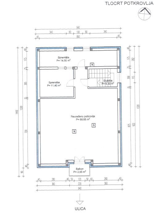 U potkrovlju se nalaze dva spremišta, balkon, neuređen tavanski prostor te stubište.