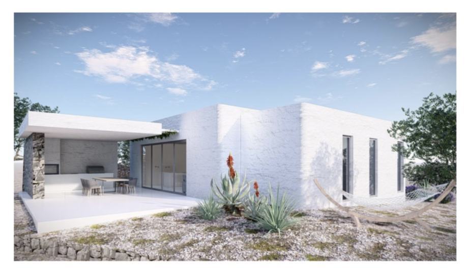 Modern single-storey villa under construction in the peaceful area of Vrh, Krk Island, close to the sea.