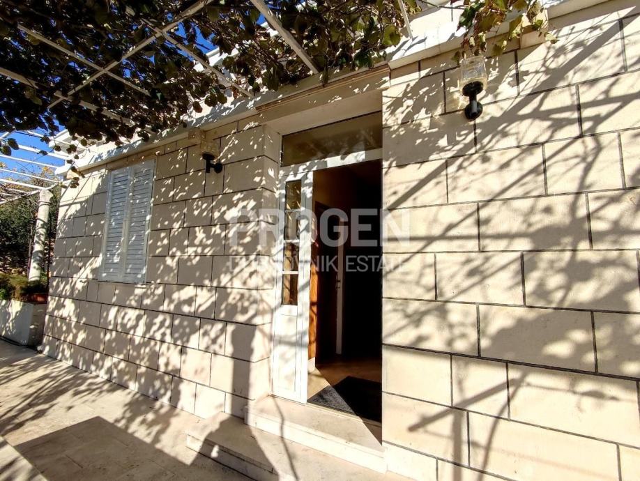 Kuća na Gornjem Konalu s prostranom okućnicom. Kuća ima neto stambene površine 130 m2. Po trenutnom unutarnjem rasporedu, radi se o komfornom dvosobnom stanu s popratnim prostorijama. Oko kuće je veliki vrt zasađen voćkama, s mogućnošću gradnje bazena. Prednja fasada kuće i šetnica ispred obloženi su kamenom. Iz kuće i dvorišta pruža se otvoreni pogled na more. Lijepa nekretnina, cijeli dan u suncu, s velikim potencijalom za nadogradnju i dodatno uređenje. Kuća nema prilaz automobilom, a najbliži parking je na nadvožnjaku.