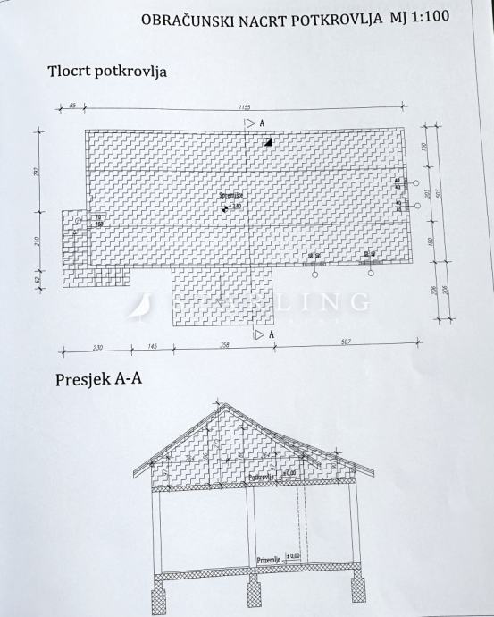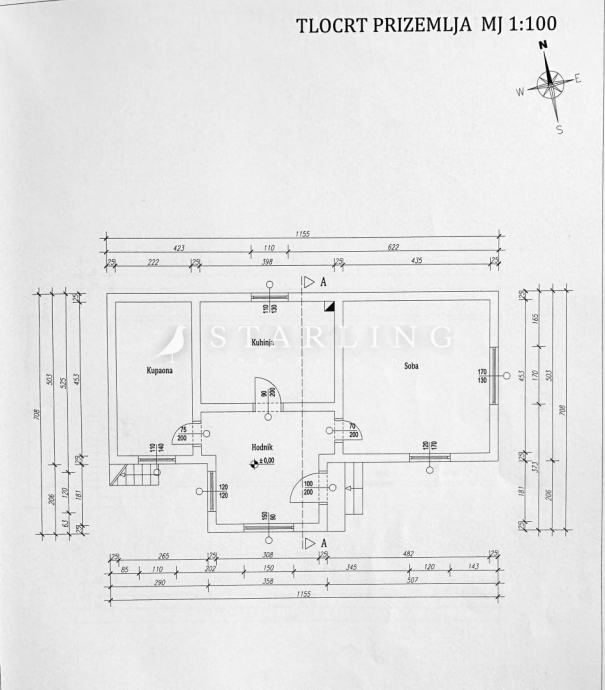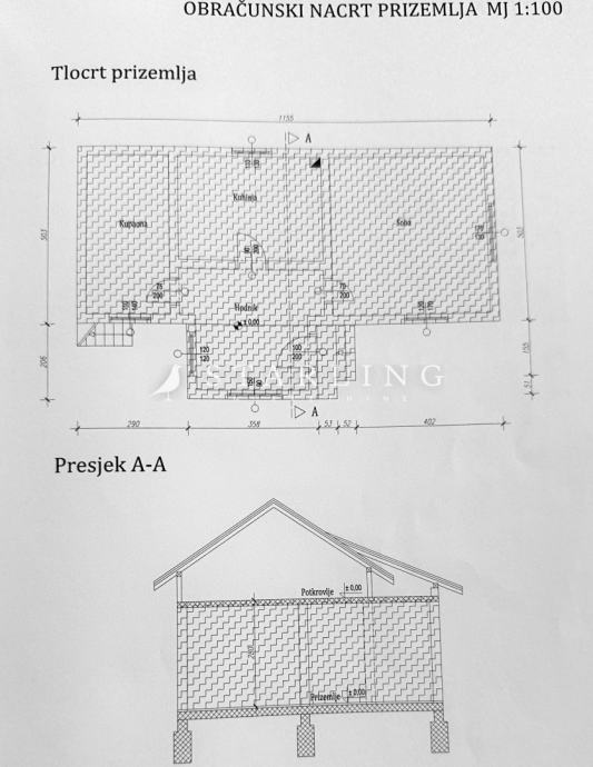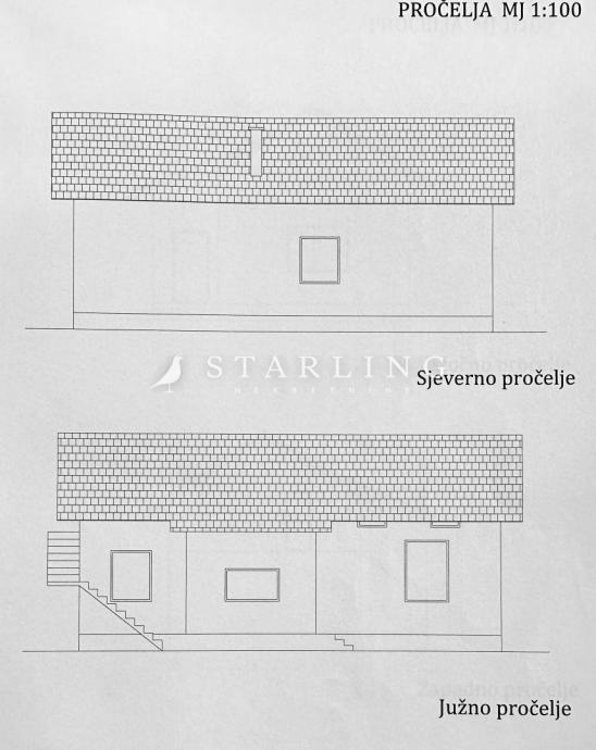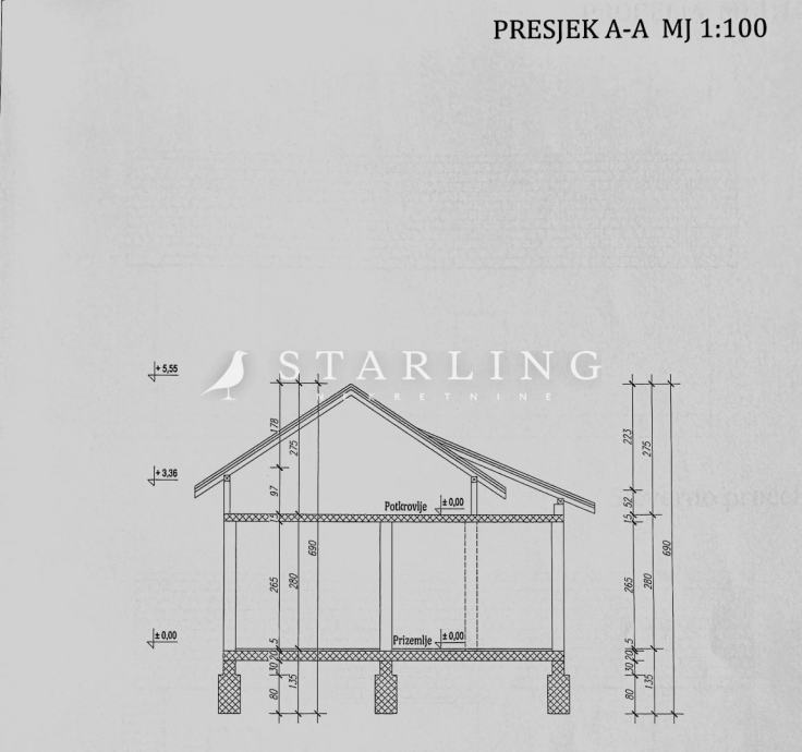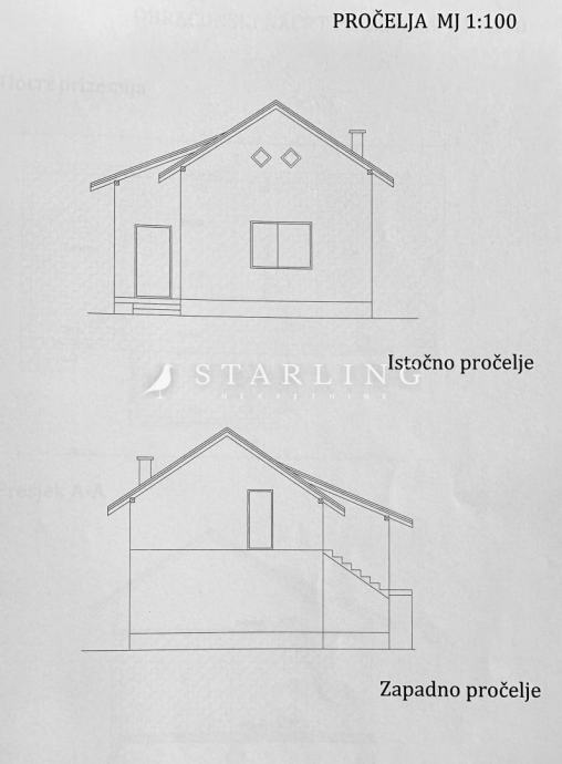 PRIZEMLJE: dnevni boravak s kuhinjom, kupaonica, hodnik i 1 soba