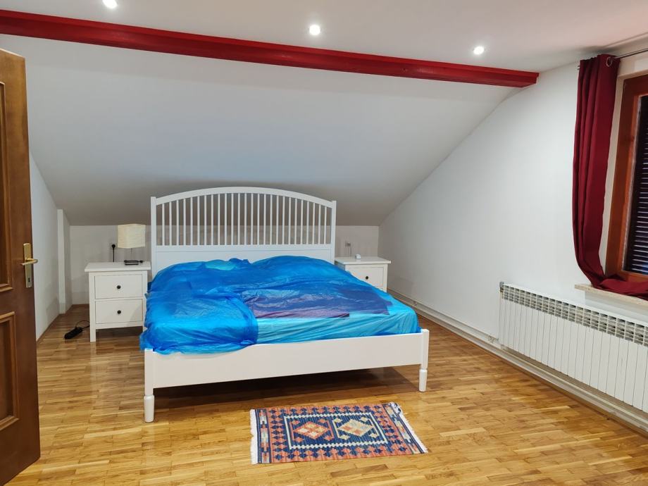 Prodaje se kuća u Vugrišincu od 280m2 sa pogledom na Međimurske brege i Sloveniju na ograđenoj parceli od 2384m2. Kuća je u 3 etaže; podrumski dio, prizemlje i visoko potkrovlje. U prizemlju se nalazi hodnik, kupaona, dvije spavaće sobe, kuhinja, blagovaona, dnevni boravak iz koji se izlazi na veliku terasu iz koje se pogled pruža na brege i Sloveniju. U hodniku su stepenice za kat na kojem je veliko predsoblje, jedna velika soba, dvije manje sobe i kupaona. Podrum je pod cijelom kućom u kojem je kotlovnica sa WC-om, 3 spremišta, kuhinja s izlazom na terasu i dvorište. Okućnica je uređena sa posađenim ukrasnim grmljem, cvijećem i voćkama, te je cijela parcela ograđena. Kuća je renovirana 2021.godine kada je promijenjeno krovište sa 45 cm izolacije i toplinska fasada sa 10 cm stiropora a od sjeverne strane 12 cm stiropora. Grijanje je entralno na plinski bojler i peć na drva. Vodovod je u kombinaciji gradski i privatni bunar. Kuća je uređena i namještena, te ima svoju privatnost. Vlasništvo je čisto! Sve ostale informacije kao i za ogled nekretnine zvati na broj telefona +385 98 210570
