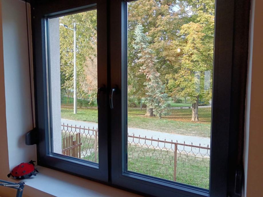 Prozori veće površine kuće gledaju na prekrasan park koji je na desetak metara.