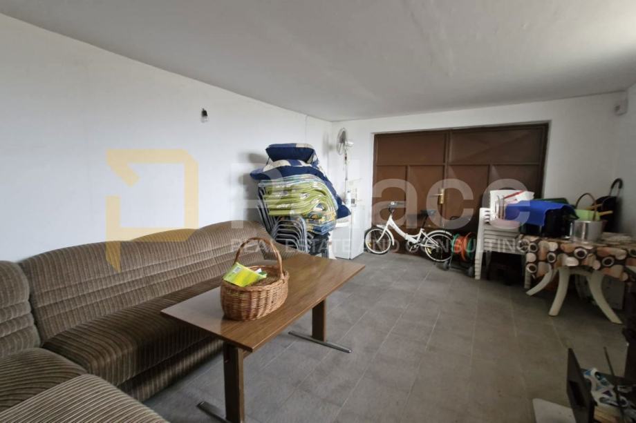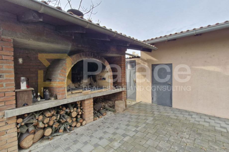 U dvorištu je pomoćna prostorija koja je uređena kao ljetna kuhinja, te se iz nje ulazi u garažu. Iz dvorišta stepeništa prema terasi veličine 40 m2. U nastavku dvorišta zidani roštilj te voćnjak.