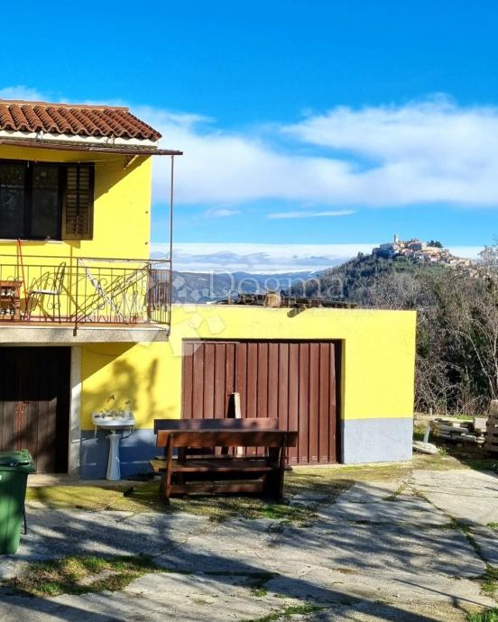 Kuća smještena na mirnoj lokaciji s otvorenim, panoramskim pogledom na Motovun, okolne brežuljke i vinograde.