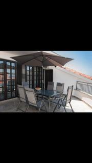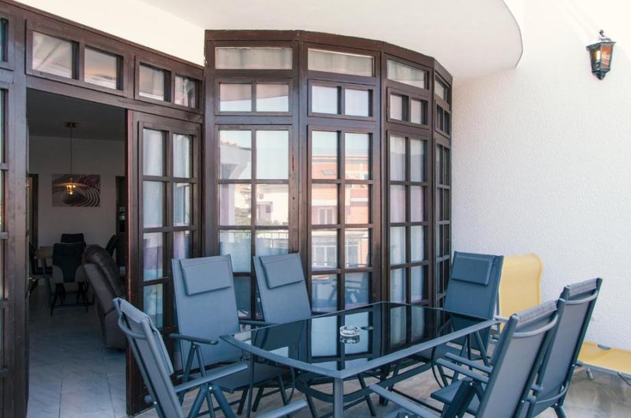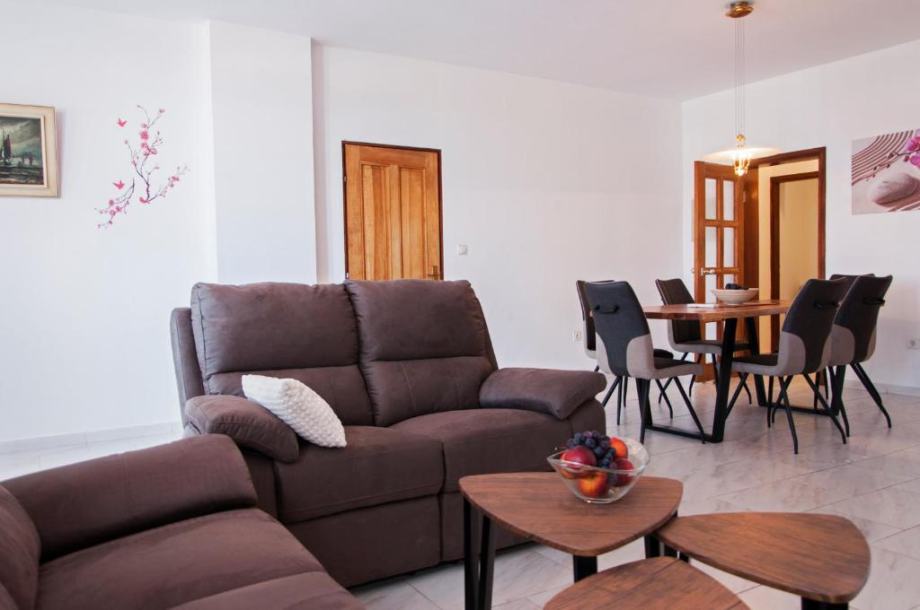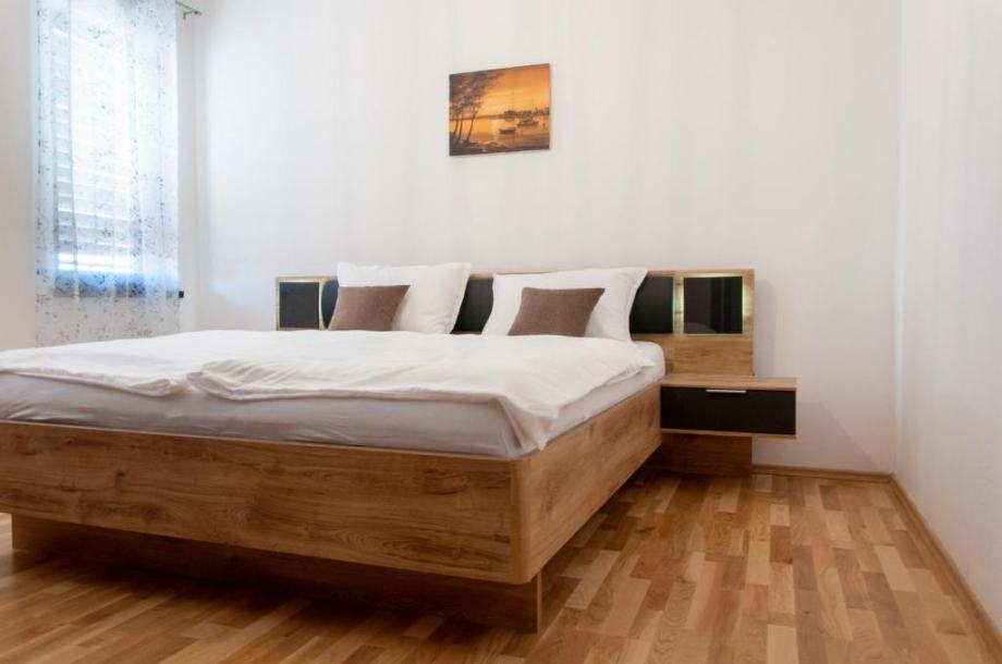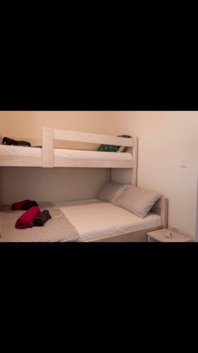 Manji stan (46,45m2) ima dvije spavace sobe, jedno kupatilo, balkon (25,85m2) i potkrovlje (20,81m2). Oba stana su kompletno namjestena i posjeduju klima uredjaj.