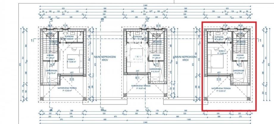 Stubištem sa prvog kata se dolazi na drugi kat gdje se nalazi master bedroom, sa walk-in ormarom, kupaonicom i prostranom natkrivenom terasom od 12.63m2.