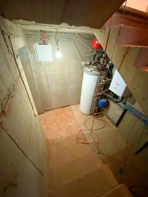 Kuća posjeduje garažu uz koju se nadovezuje podrumski prostor od 100m2 koji može poslužiti kao vinski podrum uz dodatni prostor za druženje i rekreaciju. U podrumu se nalazi i uređen sanitarni čvor.