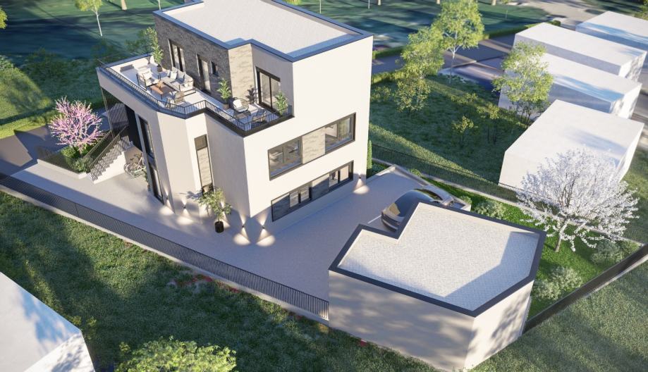 Kuća ima idejni projekt rekonstrukcije za gradnju dva odvojena stana, dvije garaže + 2 PM ukupne obračunate površine 253,29 m2.