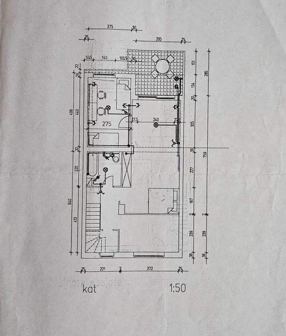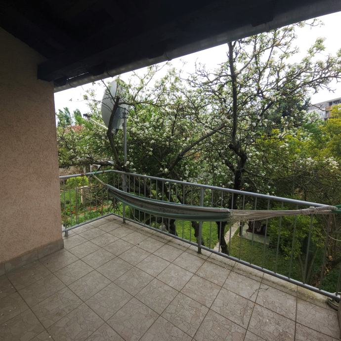 Sastoji se od prizemlja, kata, tavana, podruma i vrta s pomoćnim objektom i odvojene garaže površine 20 m2.