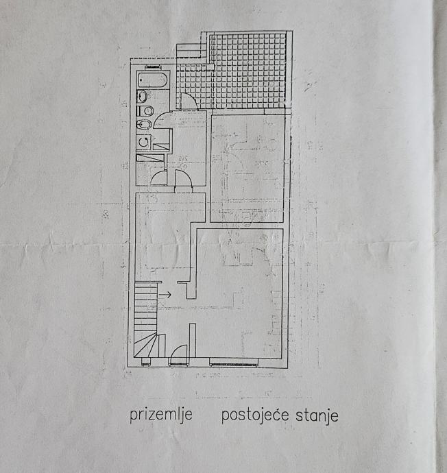 Prizemlje se sastoji prostranog dnevnog boravka, kuhinje s blagovaonicom, kupaonice s toaletom, spavaće sobe, terase s izlazom na vrt i hodnika.