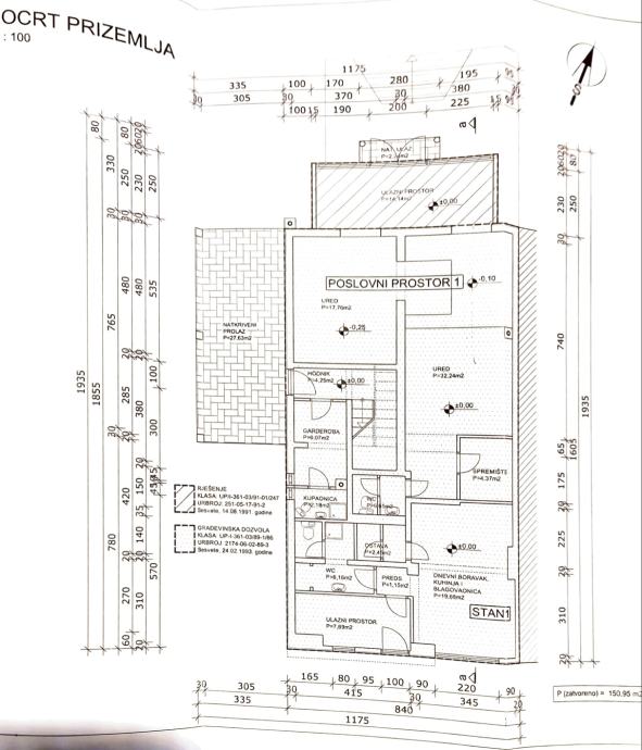 U prizemlju se nalazi poslovni prostor brutto površine 150m2 vidljiv sa glavne ceste i s ulazom sa dvije strane