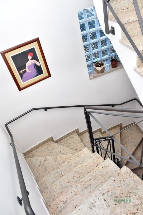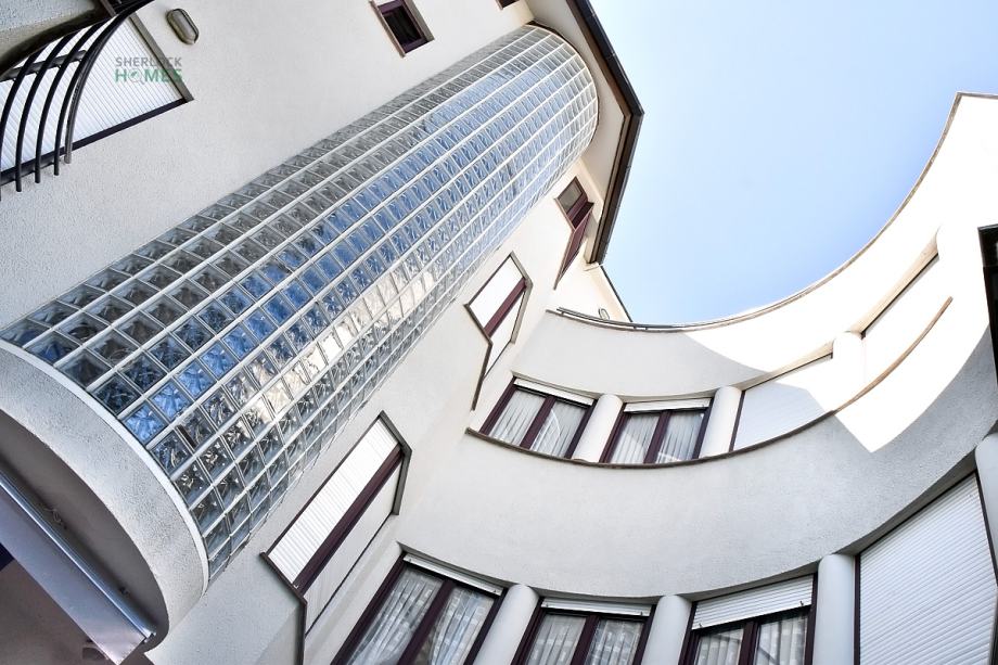 Sastoji se od 5 etaža, jedne podrumske i četiri nadzemne. Okućnica se proteže na dvije ulice, pa se sa donje strane ulazi u garaže.