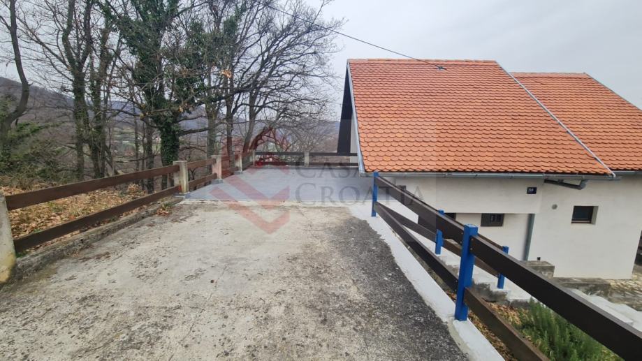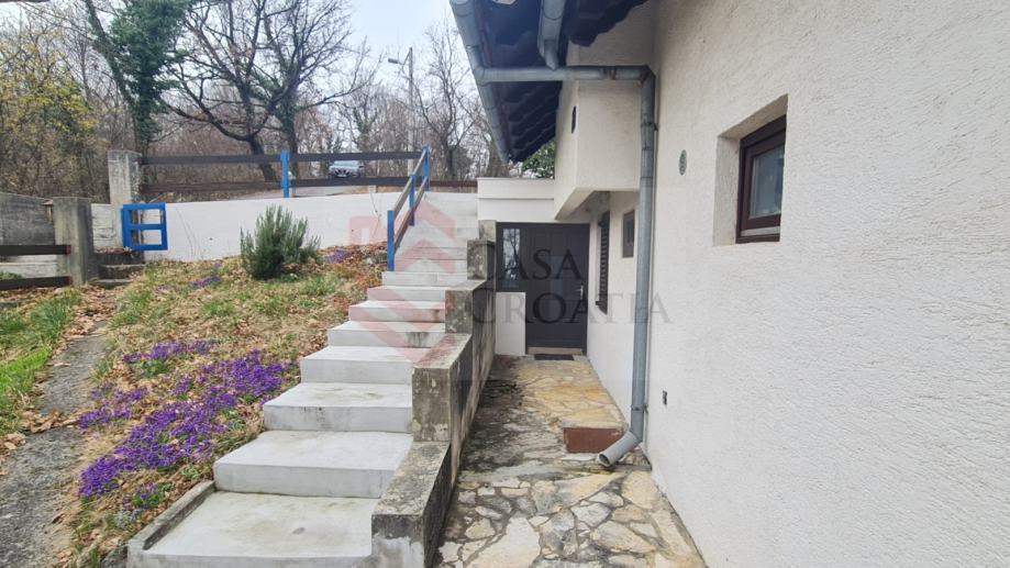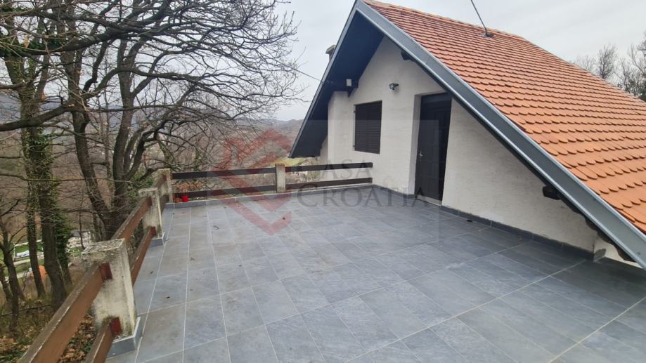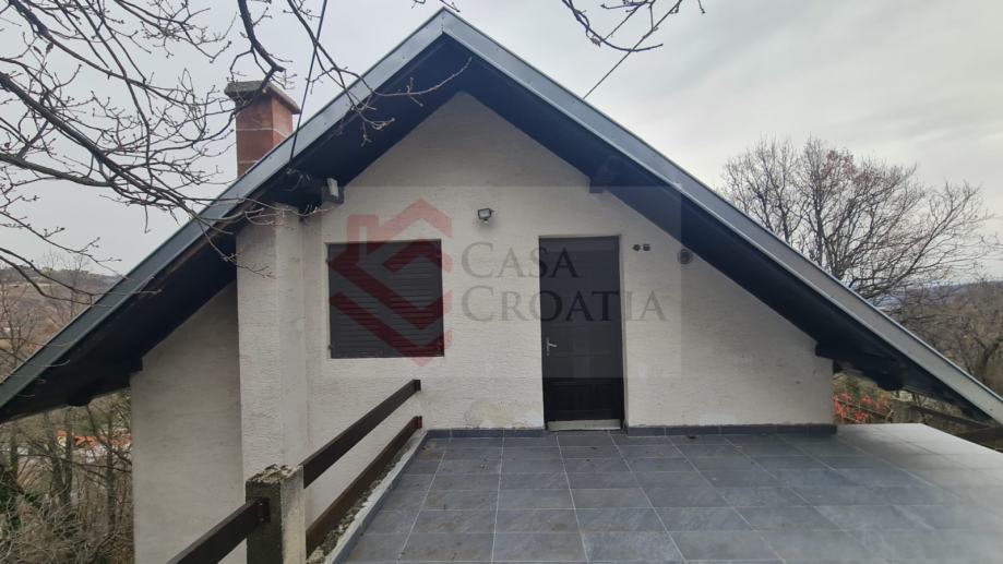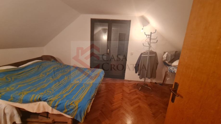 Prodaje se potpuno namještena kuća na Deščevcu izgrađena na zemljištu od cca 1200m².Kuća se sastoji od prizemlja, kata i potkrovlja, ali kako je građena na dosta strmom terenu, na sve etaže se ulazi direktno iz vrta i mogu se koristiti potpuno odvojeno i neovisno jedna od druge kao zasebne cjeline.U potkrovlju se nalazi stan od cca 60m², na 1. katu se nalazi stan od cca 60m² + sauna i vježbaonica od cca 40m² odvojene pregradnim zidom. Uklanjanjem pregradnog zida moguće je dobiti stan od cca 100m².U prizemlju se nalazi jedna malena garsonijera cca 20m², a pored nje spremište i kotlovnica.Vrt je potpuno omeđen drvenom ogradom i uređen, te je posađeno nekoliko voćaka. Kuća se nalazi na izuzetno mirnom i osamljenom području, ali isto tako je okružena drugim kućama na udaljenosti od cca 300m od kojih je odvojena šumom. S glavne ceste vodi asfaltni put kroz šumu isključivo za ovu nekretninu.