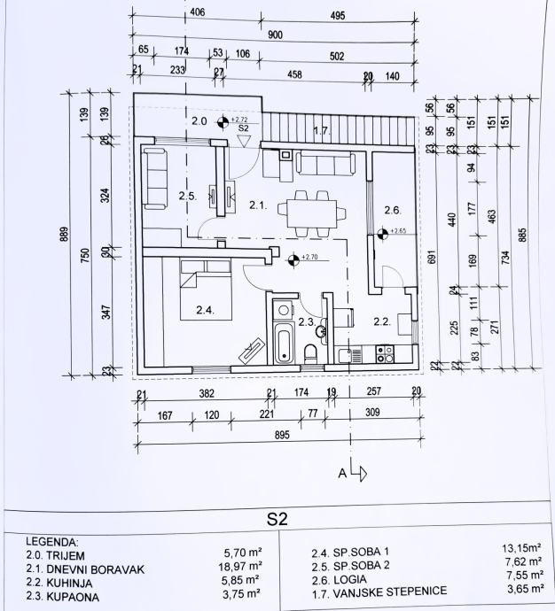 Kuća sa dva stana, dvije stambene jedinice svaka 55m2. Ova sofisticirana nekretnina nudi ukupno 110 m² pažljivo osmišljenog životnog prostora, dodatno obogaćenog prostranim spremištem, prekrasnom terasom, stvarajući skladan spoj udobnosti, praktičnosti i estetske privlačnosti.