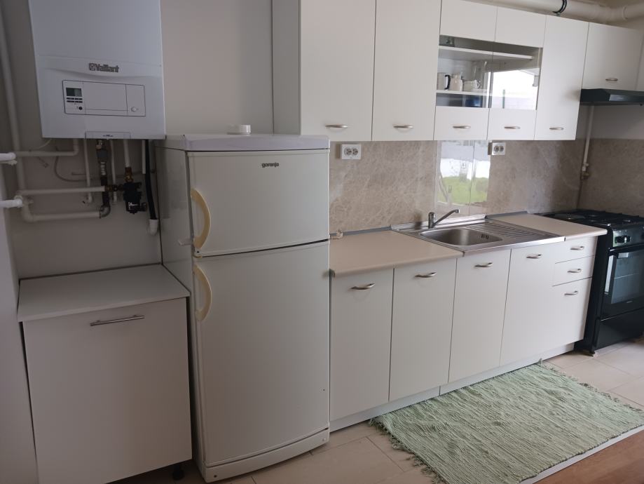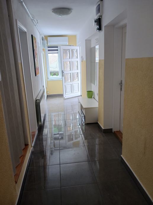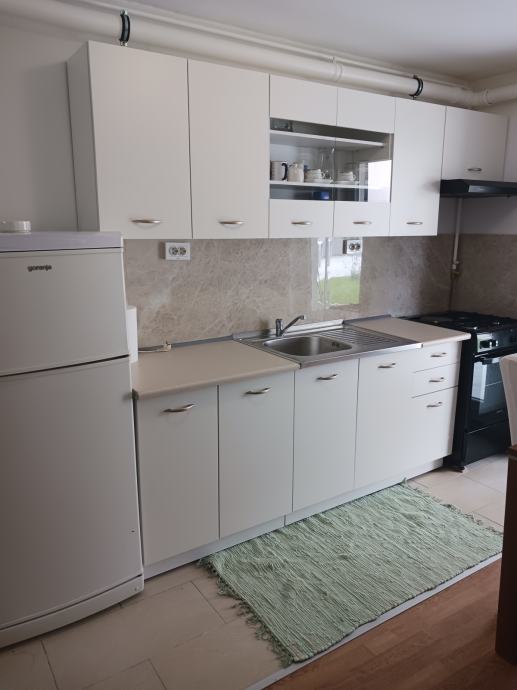 Iznajmljuje se stanu u kući prizemlje za 7 osoba,a kuća se sastoji dva odvojena stana prizemlje, kat i tavan . Svaki stan ima poseban ulaz. Potpuno novo adaptiralo i kompletno novi namještaj. Svaki stan je 3-sob, a sastoji prizemlje: od glavnog ulaza, tri sobe , kuhinja s blagavaonom, kupaone s wc-om , veliki parking i terasa .Dvije sobe namještene za tri osobe , a treća samo za jednu osobu. Kat :dvije sobe namještene za tri osobe ,a treća za dvije osobe i velika terasa od 40m2, dakle sve ukupno za 15 radnika. Parking na daljinsko otvaranje i 6 parking mjesta. Kuća se iznajmljuje pojedinačno svaki stan posebno ili u cijelosti. Cijena mjesečnog najma 250 e po osobi , plaćenje 1 mj. unaprijed, plaća se dodatno i polog 1mj. najamnina u iznosu od 1750e , naravno samo za stan prizemlje , te će se sve definirati u Ugovoru