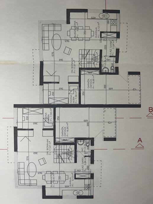 Nalaze se na parceli od 625m2, svaki od objekata ima 130m2 netto stanbene povrsine i svakoj pripada oko 250m2 okućnice. U prizemlju se nalazi garaža, predsoblje, wc, kuhinja, blagavaonica, dnevni boravak i mala radna soba. Na katu je spavaca soba s vlastitom kupaonicom i wc i terasom, 2 spavace sobe koje dijele drugu kupaonicu s wc-om