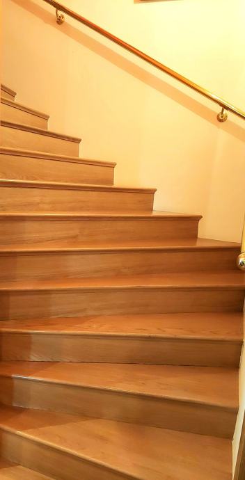Na katu se nalazi 5 spavaćih soba, 2 kupaonice s wc-ima, degažman + hal i 3 balkona. U podrumu spojenim unutarnjim stubištem, smješteni su i zajednički sadržaji (spremište i kotlovnica za grijanje na plin, lož-ulje i priprema tople sanitarne vode sistemom vanjskih solarnih kolektora).