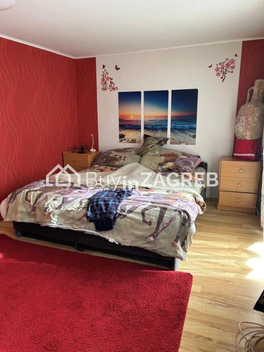 Gornja etaža sastoji se od dnevnog boravka,kuhinje,blagavaonice,kupaonice sa wc-om,dvije spavaće sobe,ostave i dva balkona. Stanu pripadaju dva parkirna mjesta ispred kuće te spremište na tavanu.