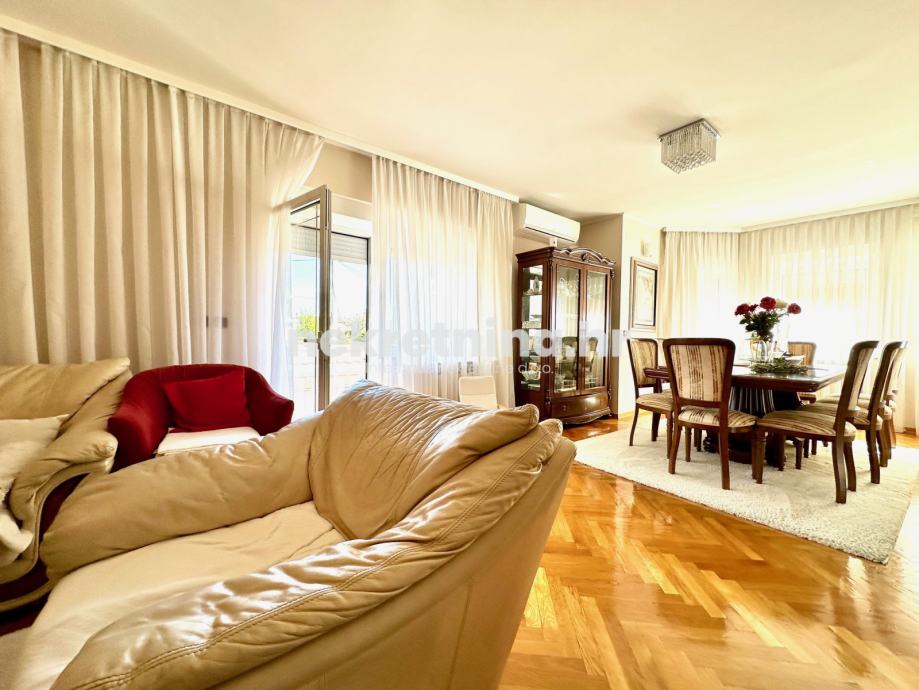 Stan 2 na 1. katu stambene zgrade, koji se sastoji od: hodnika, dnevnog boravka s blagovaonicom, kuhinje, tri sobe i kupaonice površine 116,93 m2, sporednog dijela: balkona površine 9,81 m2 i terase površine 51,93 m2.