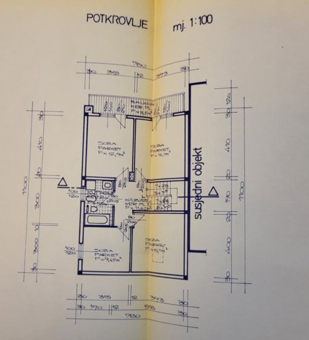 POTKROVLJA - stubište, kupaonica, tri sobe, kuhinja ili četvrta soba po potrebi, balkon