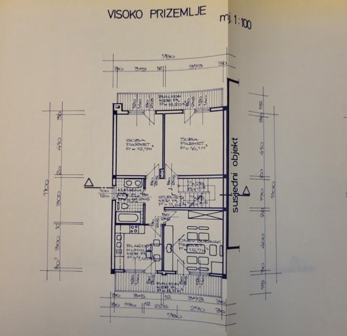 VISOKOG PRIZEMLJA - stubište, hodnik, kupaonica, kuhinja, tri sobe, dva balkona