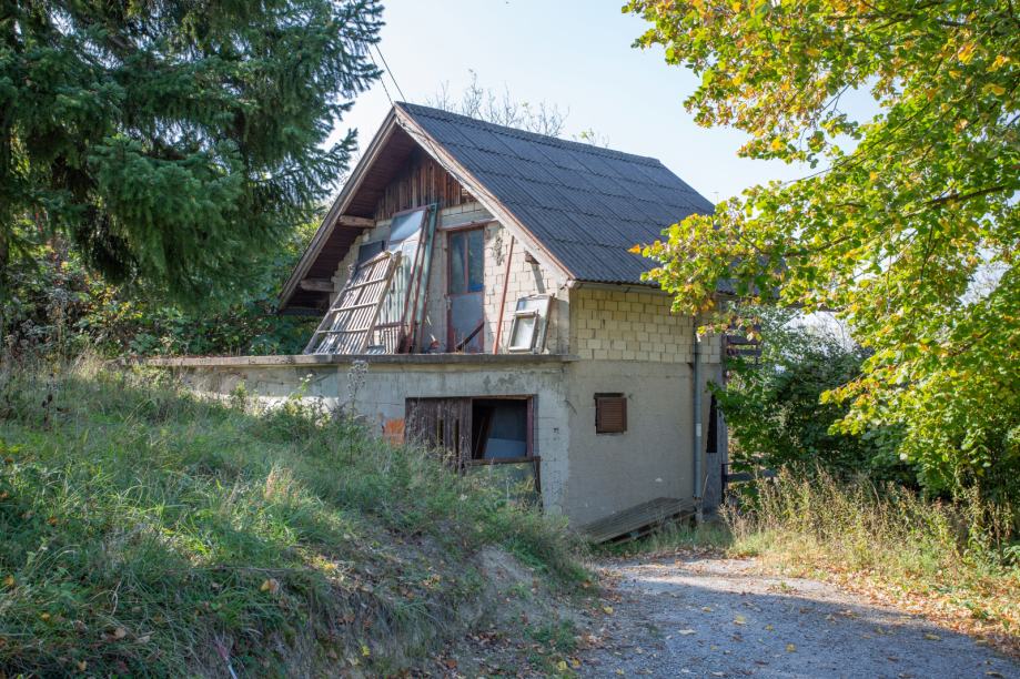Prodaje se vikendica / klet od 70m2 (podrum, prizemlje sa terasom i garažom i potkrovlje) na zemljištu od 2780m2 od čega ca 660m2 građevinsko. NUŽNA adaptacija. Svi priključci su pred kućom.