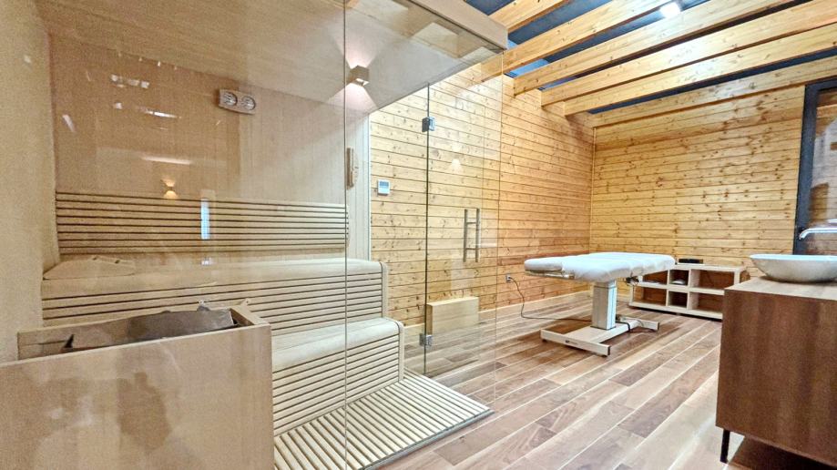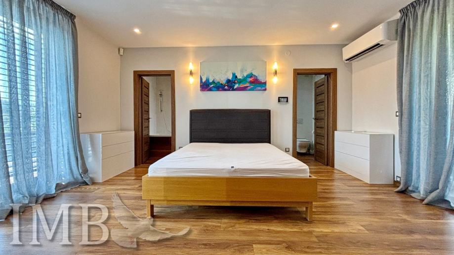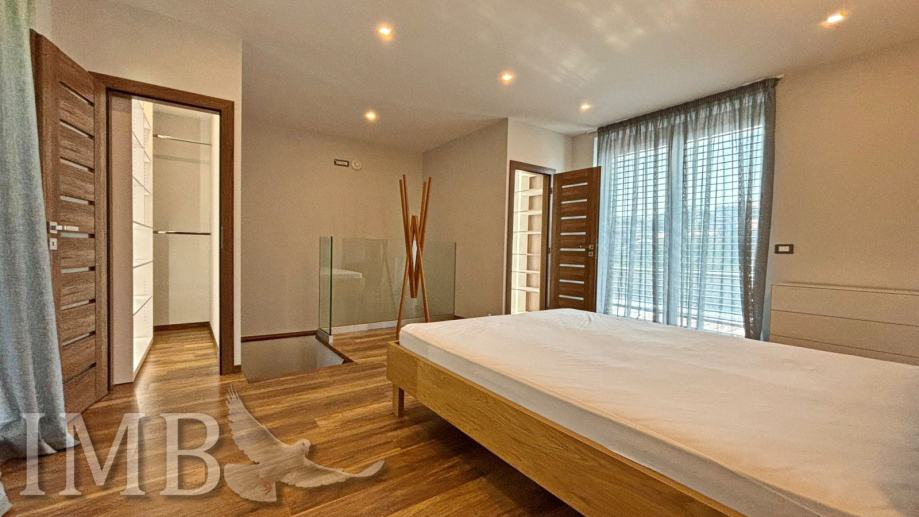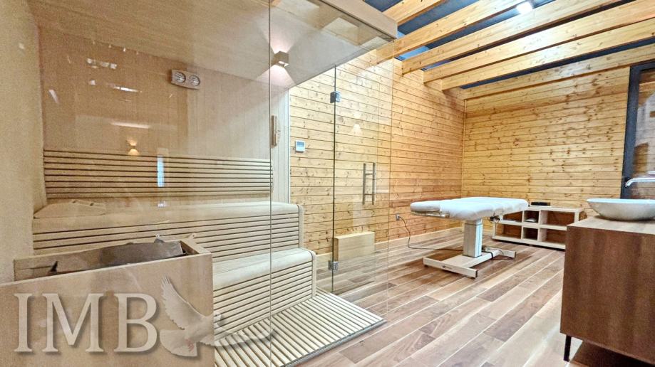 Vila je raspoređena na četiri etaže i nudi savršen omjer elegancije, funkcionalnosti i privatnosti. U prizemlju se nalazi prostran dnevni boravak s kuhinjom i blagovaonicom, a katovi uključuju ukupno četiri spavaće sobe, više kupaonica, wellness zonu s bazenom i saunom te dvije velike terase s pogledom.