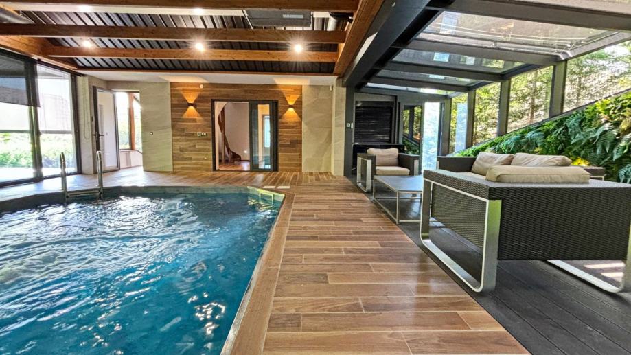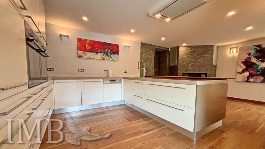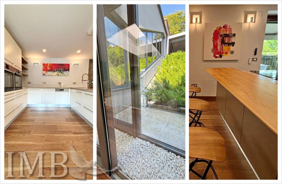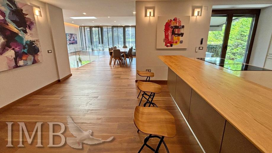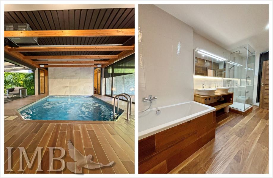 Korišteni su vrhunski materijali – keramika i parket prve klase, dizajnerski namještaj, sustav klimatizacije i napredna toplinska izolacija. Vila ima i garažu za dva automobila te uređeno dvorište s potencijalom za dodatne sadržaje poput ljetne kuhinje ili lounge zone.