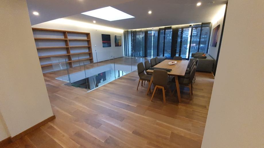 Kat: Prostrani dnevni boravak (64,88 m²), moderna kuhinja (26,76 m²), gospodarstvo i terasa (24,21 m²).