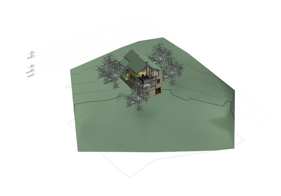 Najdužom (sjevernom) stranom zemljišta graniči s rubom šume i zelenim pojasom. Samo zemljište ima 600 m2 građevinske namjene, a ostalo je zeleni pojas.