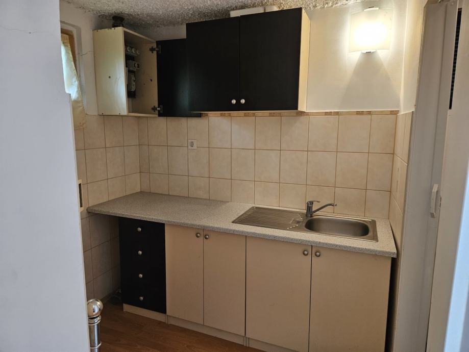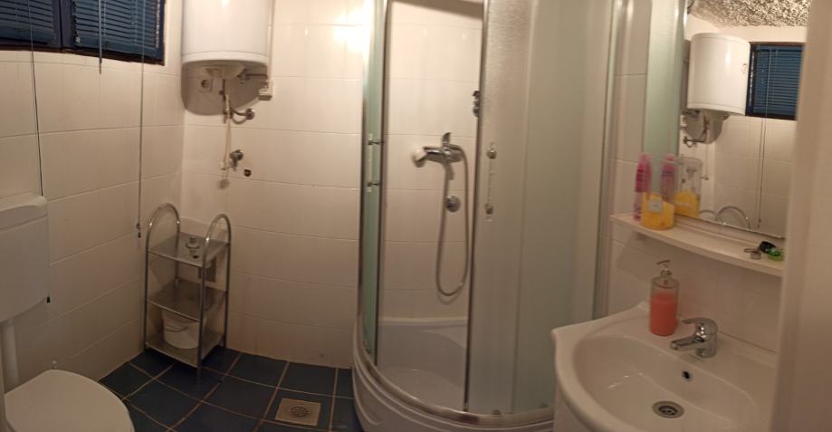 Kuća se sastoji od 2 etaže. Prizemlje je stambeno uređeno i sastoji se od dnevnog boravka, kuhinje (kompletno uređene) i male kupaonice (wc, umivaonik i tuš kabina). Kuhinja i kupaonica su kompletno uređene 2010. godine. Prizemlje ima i poluotvorenu malu terasu te malu ostavu u sklopu kuće, ali zasebnog ulaza.