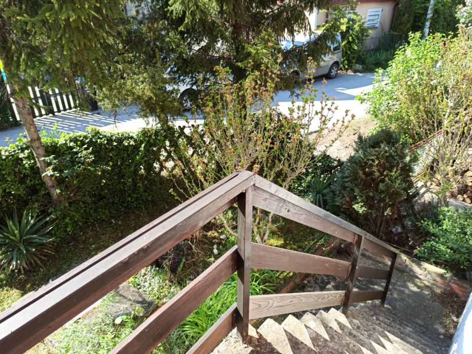 1. kat je odvojen vanjskim stepeništem i balkonom (Roh Bau). Kuća ima i tavan dostupan s balkona.