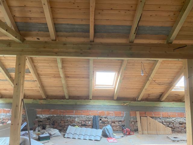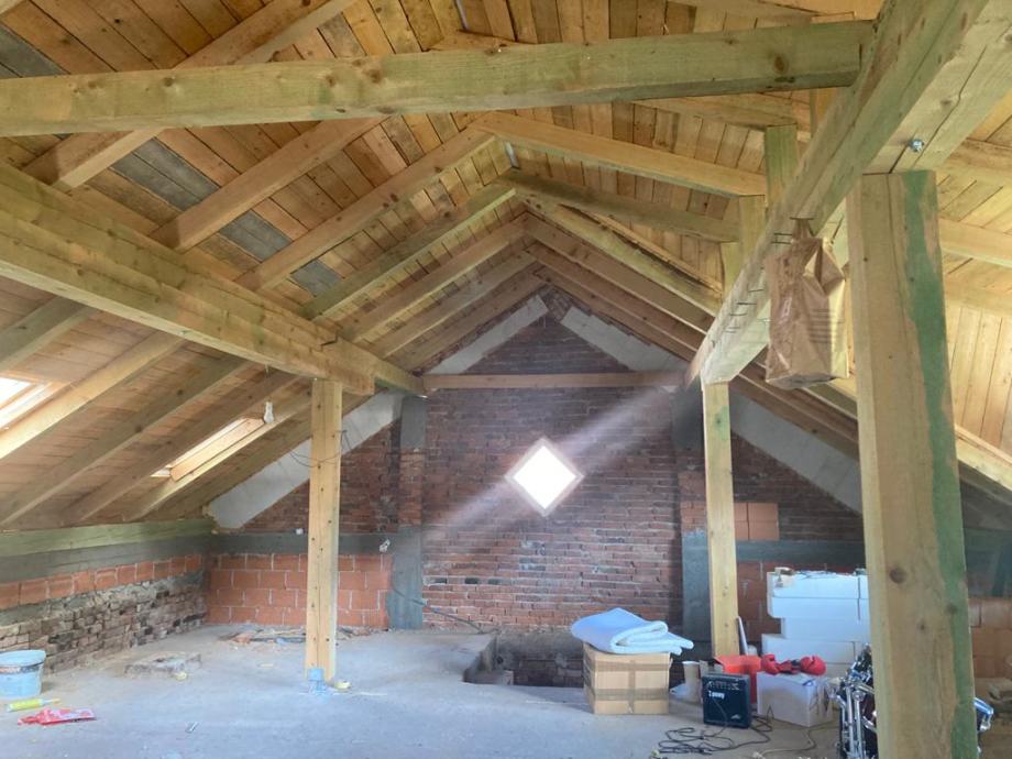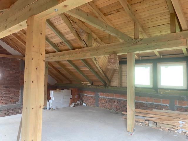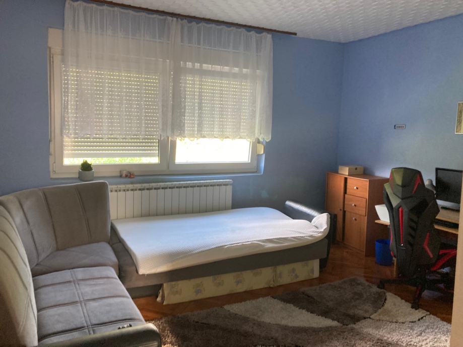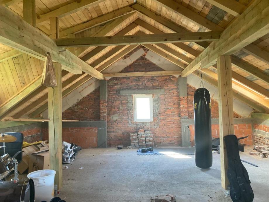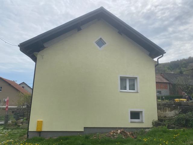 Kuća se sastoji od 124 m2 uređenog stambenog prostora: prizemlja ( hodnik, dnevni boravak, kuhinja s blagovaonom, toalet ) te kata ( tri sobe, kupaona, spremište, balkon ). Neuređeno potkrovlje neto površine 76 m2, vrlo pogodno za uređenje u stambeni prostor zbog prozračnosti i izvrsne osvijetljenosti. Kompletno krovište obnovljeno 2020 godine: nova drvena konstrukcija, limeni pokrov, PVC krovni prozori te je izvedena nova krovna kućica s 2 PVC prozora. U oglašenu stambenu kvadraturu od 124 m2 nije uračunato potkrovlje kao niti spremište u prizemlju kuće površine 32 m2. Na parceli postoji drveni pomoćni objekt površine 84 m2 za koji postoji mogućnost gradnje zamjenskog objekta istih gabarita, uz izradu glavnog projekta, bez plaćanja naknada.