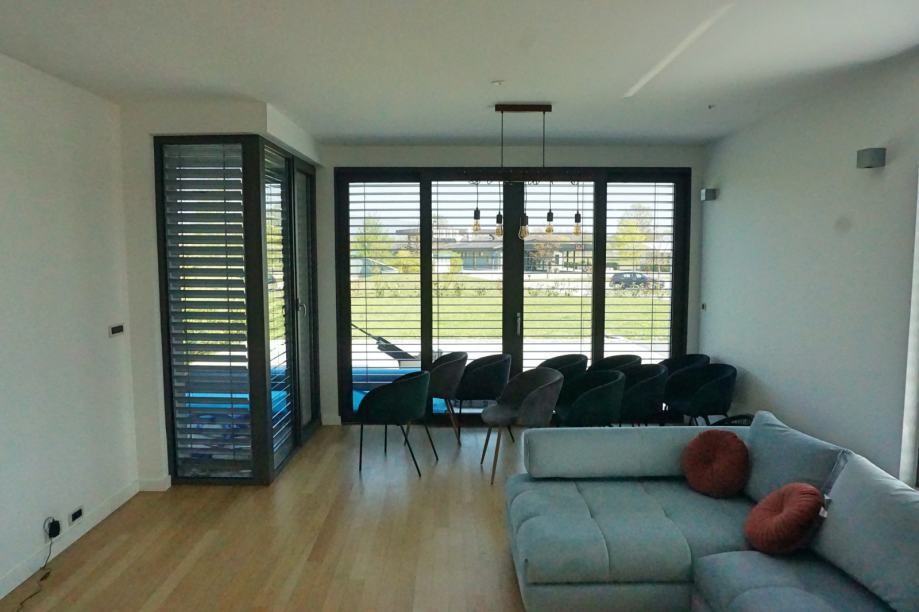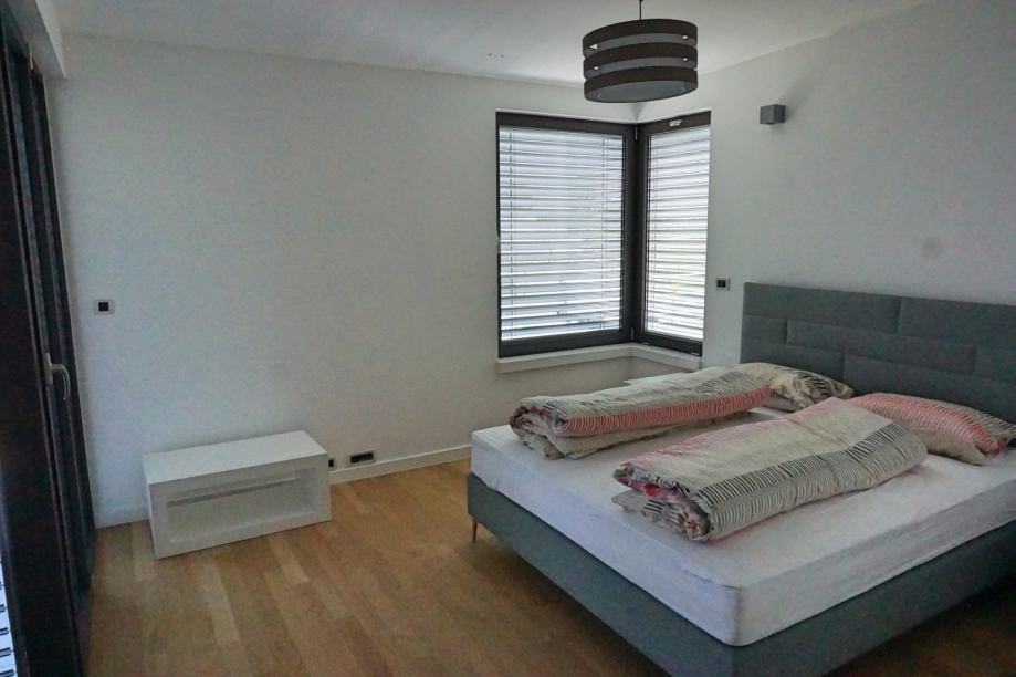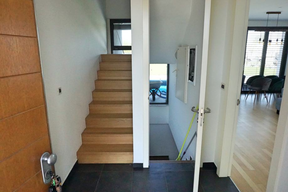 Odlična kvaliteta gradnje, sama pozicija kuće na manjoj uzvisini u usporedbi sa ostalim kućama u naselju, osiguran parking ispred i nasuprot kuće, kontrolirani ulazak u naselje, orijentacija sjever - jug,termo fasada, protuprovalna ulazna vrata, vanjska alu stolarija, rolete na električno upravljanje, unutarnja stolarija drvene od poda do stropa, grijanje i hlađenja sistemom toplinskih pumpi (zemljani kolektor), namješteno.