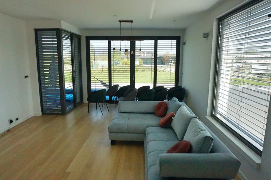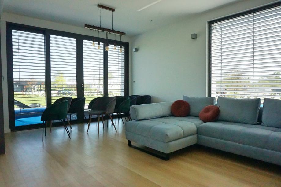 Iznajmljuje se moderna kuća površine netto126m2 (prizemlje i kat) te 55m2 uređenog i u potpunosti adaptiranog podruma u Novom Zagrebu, Lanište, na lokaciji Riverside Golf Zagreb (resort).