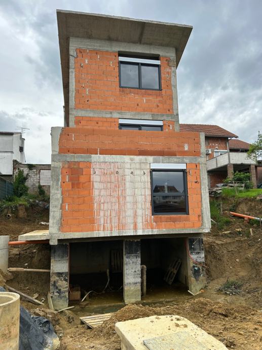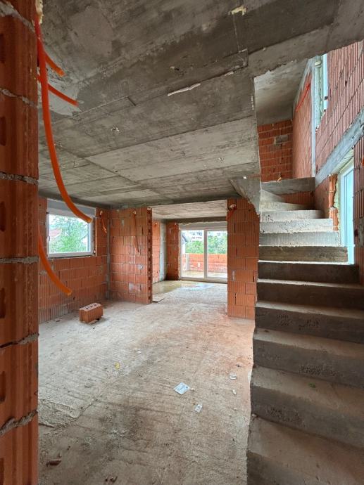Prodaje se kuća u izgradnji smještena na atraktivnoj lokaciji, svega 10 minuta vožnje od strogog centra grada. Objekt se sastoji od dvije zasebne stambene jedinice – stanovi od 90 m² i 60 m² – idealni za veću obitelj, najam ili kombinaciju stanovanja i poslovanja.